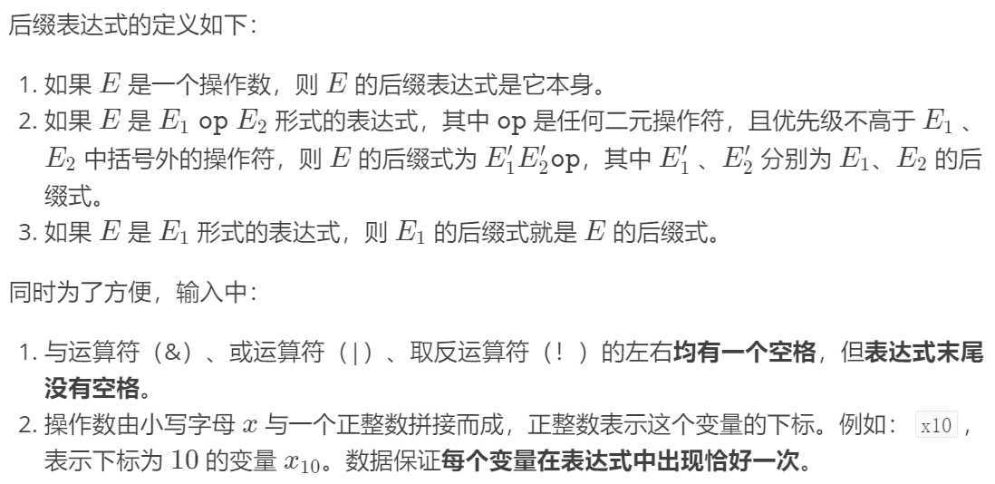 数据保证输入的表达式合法。变量的初值为 0 或 1。