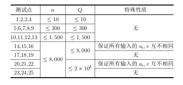 对于所有测试数据,满足 1 ≤ n ≤ 8, 000, 1 ≤ Q ≤ 2×105, 1 ≤ x ≤ n, 1 ≤ v, ai ≤ 109。